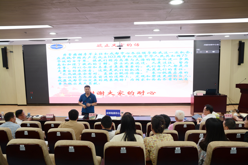 7月1日,正值中国共产党成立103周年之际,中国地质调查局成都地质调查中心举办西南地质大讲堂,特邀中国地质调查局青岛海洋地质研究所刘守全研究员为中心全体干部职工授课,会议由中心主任、党委副书记李军主持。