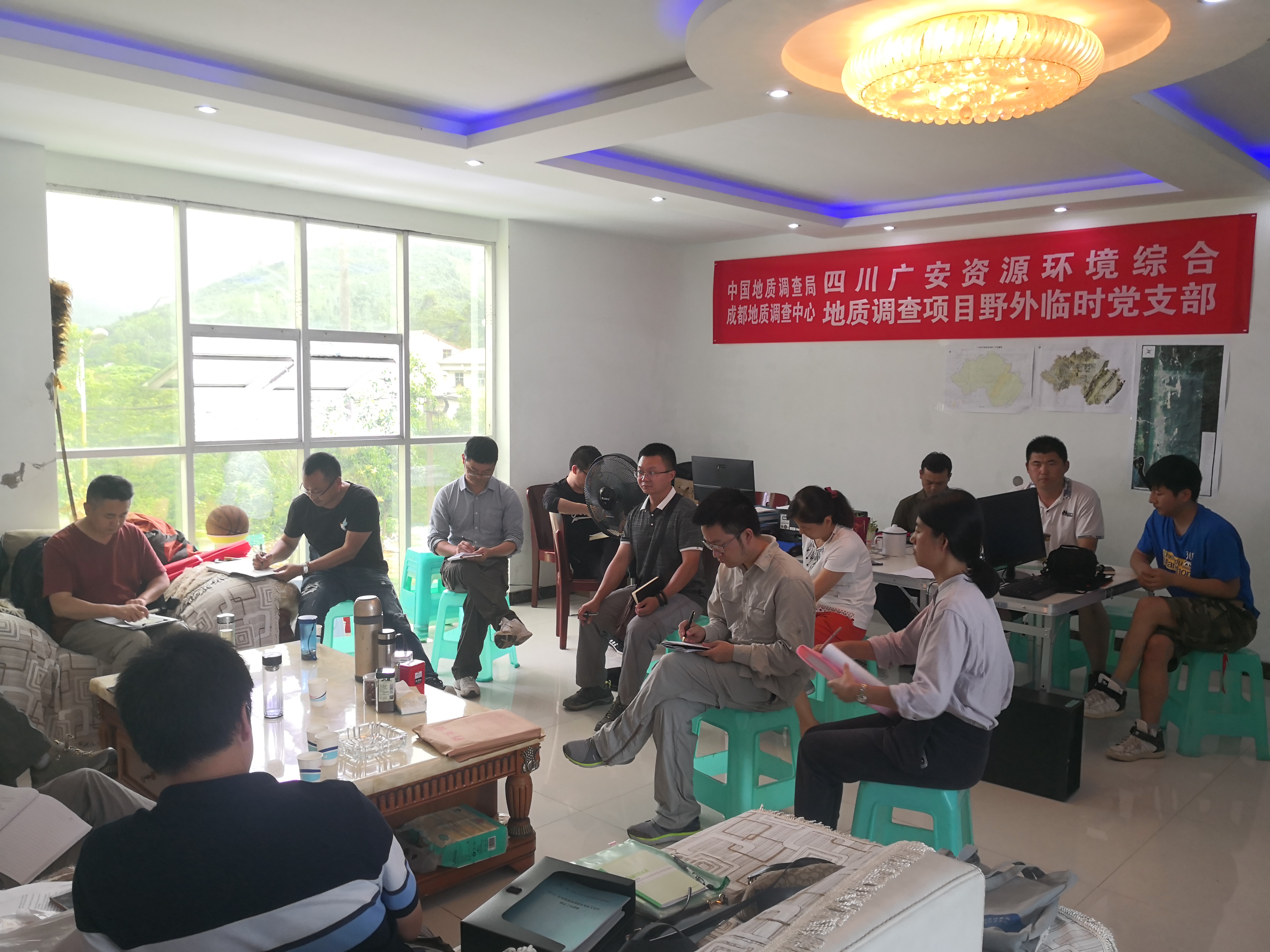 为深入学习贯彻习近平新时代中国特色社会主义思想和党的十九大精神,贯彻落实全面从严治党要求,积极推动党建工作落地生根,近日,自然资源部中国地质调查局成都地质调查中心主任助理刘大文带领党办、安全保密处、工会等相关工作人员前往四川广安资源环境综合地质调查项目野外临时党支部进行调研指导检查。