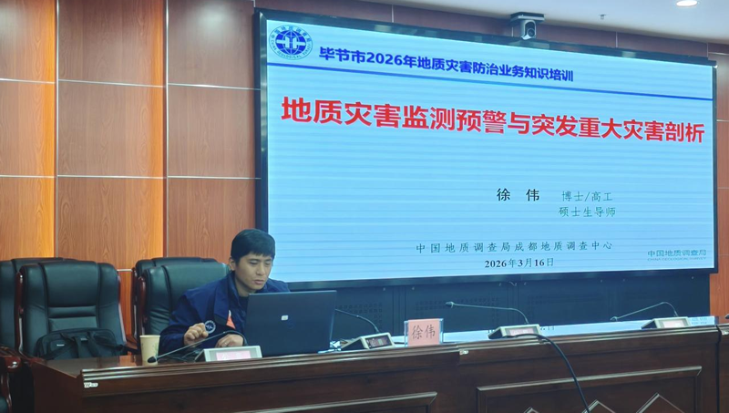 为贯彻落实自然资源部乌蒙山地质灾害防治现场工作会议精神,提升乌蒙山区地质灾害防范能力,近日在毕节市自然资源与规划局组织下,成都地调中心地质安全评价团队派出长期在贵州一线从事地质灾害调查研究相关专家,积极参与毕节市2026年地质灾害防治业务知识培训,以专题授课形式与100余名市县主管部门相关人员深入交流。