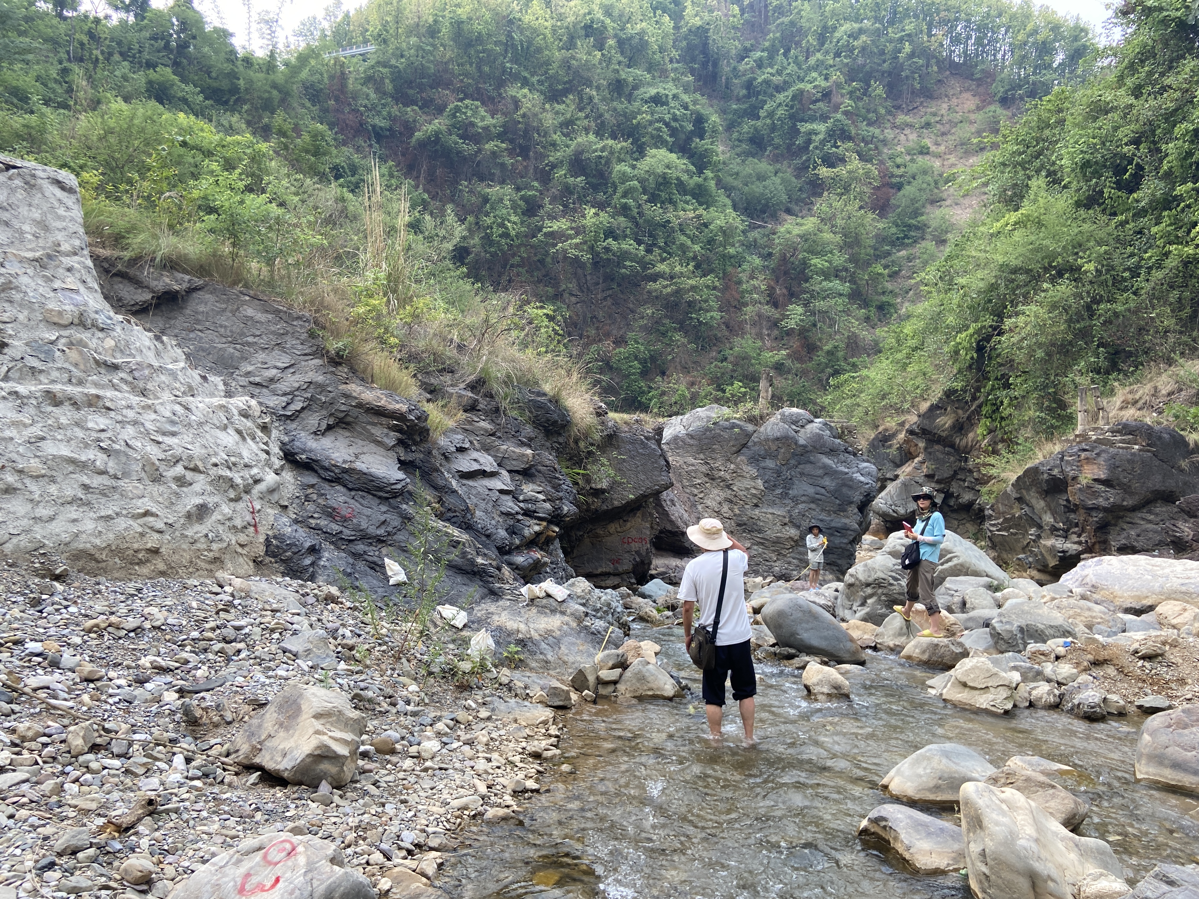 尼泊尔丹森地区野外剖面测量现场