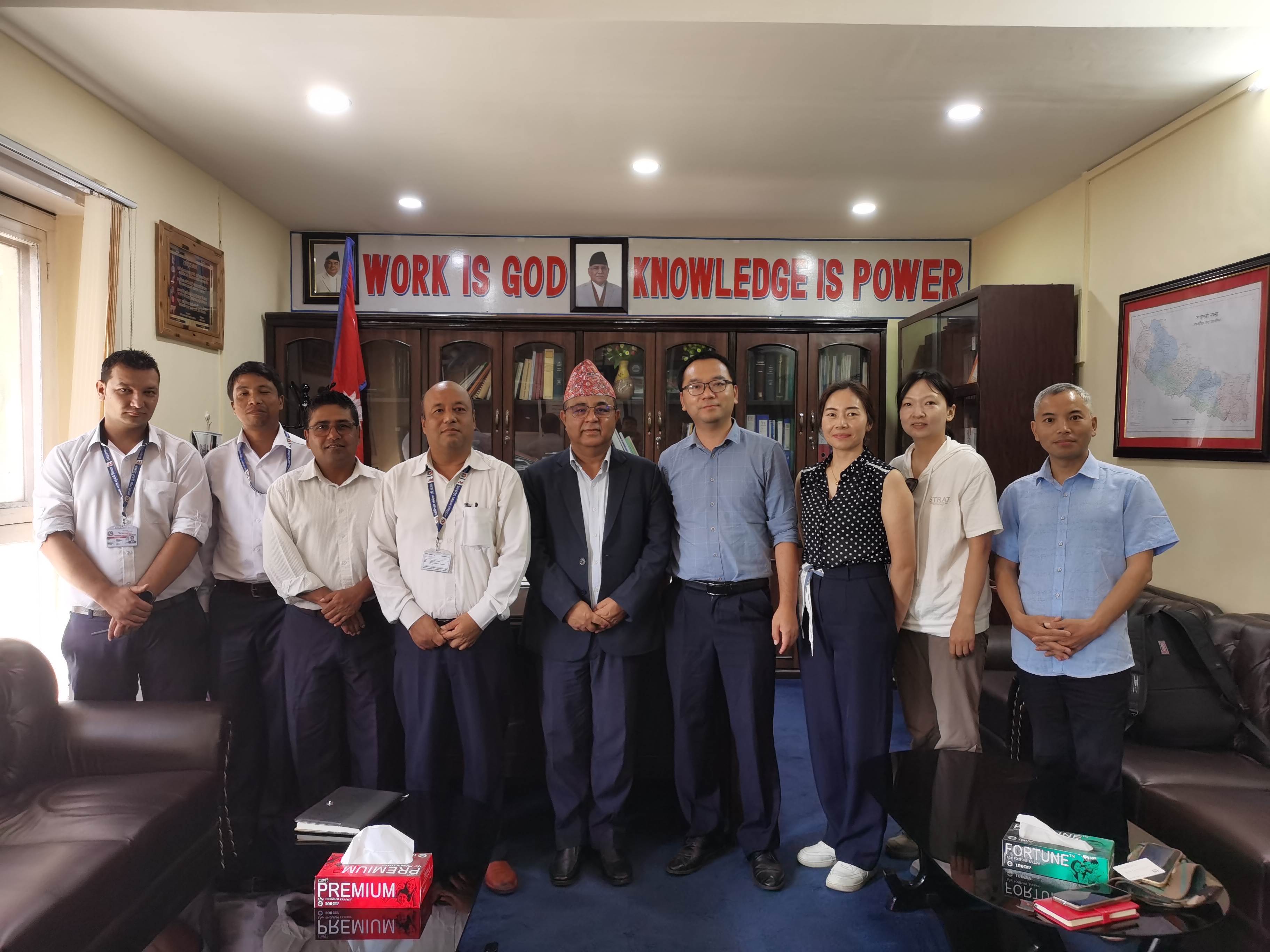 7月24日,与尼泊尔矿产地质局Ram Prasad Ghimire局长见面交谈