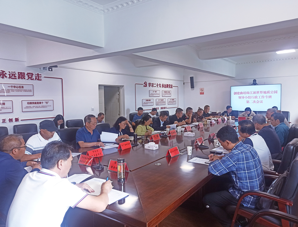 2023年9月27日,曲靖市林业与草原局组织召开了创建曲靖珠江源世界地质公园工作领导小组行政工作专班第二次会议,曲靖市人大城环资委、市经开区管委会、市自然资源和规划局、市文化和旅游局、市广播电视局、中国科学院古脊椎动物与古人类研究所、中国地质大学(北京)、曲靖师范学院、罗平县林业与草原局、罗平县生物群地质公园管理局相关领导及专家,中国地质调查局成都地质调查中心(以下简称“成都地调中心”)基础地质室张启跃研究员、文芠高级工程师两位同志应邀出席了本次会议。会议旨在进一步加强统筹协调、加快推进曲靖珠江源世界地质公园申报创建工作,及时掌握各项工作进度和完成情况。