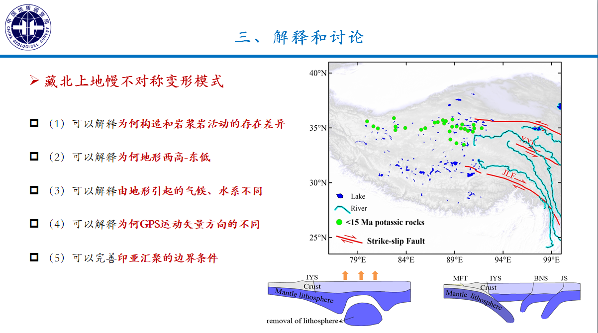 在学术报告中,团队成员报道了自主研发的重力反演算法和藏北之下0-200 km深的密度结构,提出藏北岩石圈地幔变形在东西方向具有不对称的特点:以约89°E为分界线,对流移除和陆内俯冲可能在西部和东部分别扮演着重要的角色。这种不对称的变形模式可能在形成青藏高原不对称的地形、水系、气候等方面发挥了重要的作用。