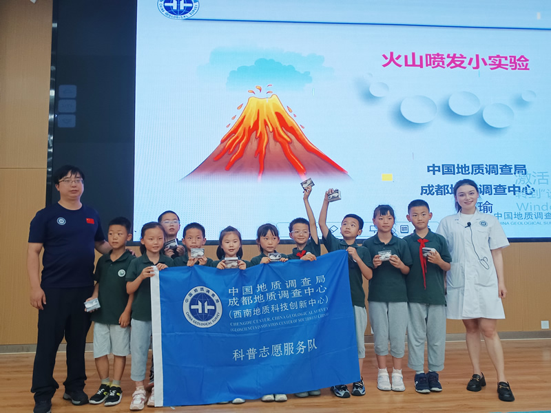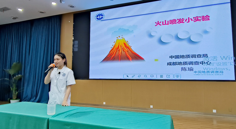 活动中,成都地调中心实验室陈瑜工程师先向学生们深入浅出地介绍了地球的组成结构、板块运动和火山作用基本知识。然后逐一演示了《火山喷发模拟实验》《大象牙膏实验》《海底熔岩模拟实验》等三个实验,并邀请了学生代表亲自动手操作,使他们在实践中深化对地质知识的理解。