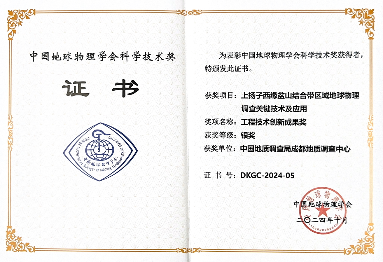 成都地调中心地球物理团队领取中国地球物理学会工程技术创新成果奖银奖