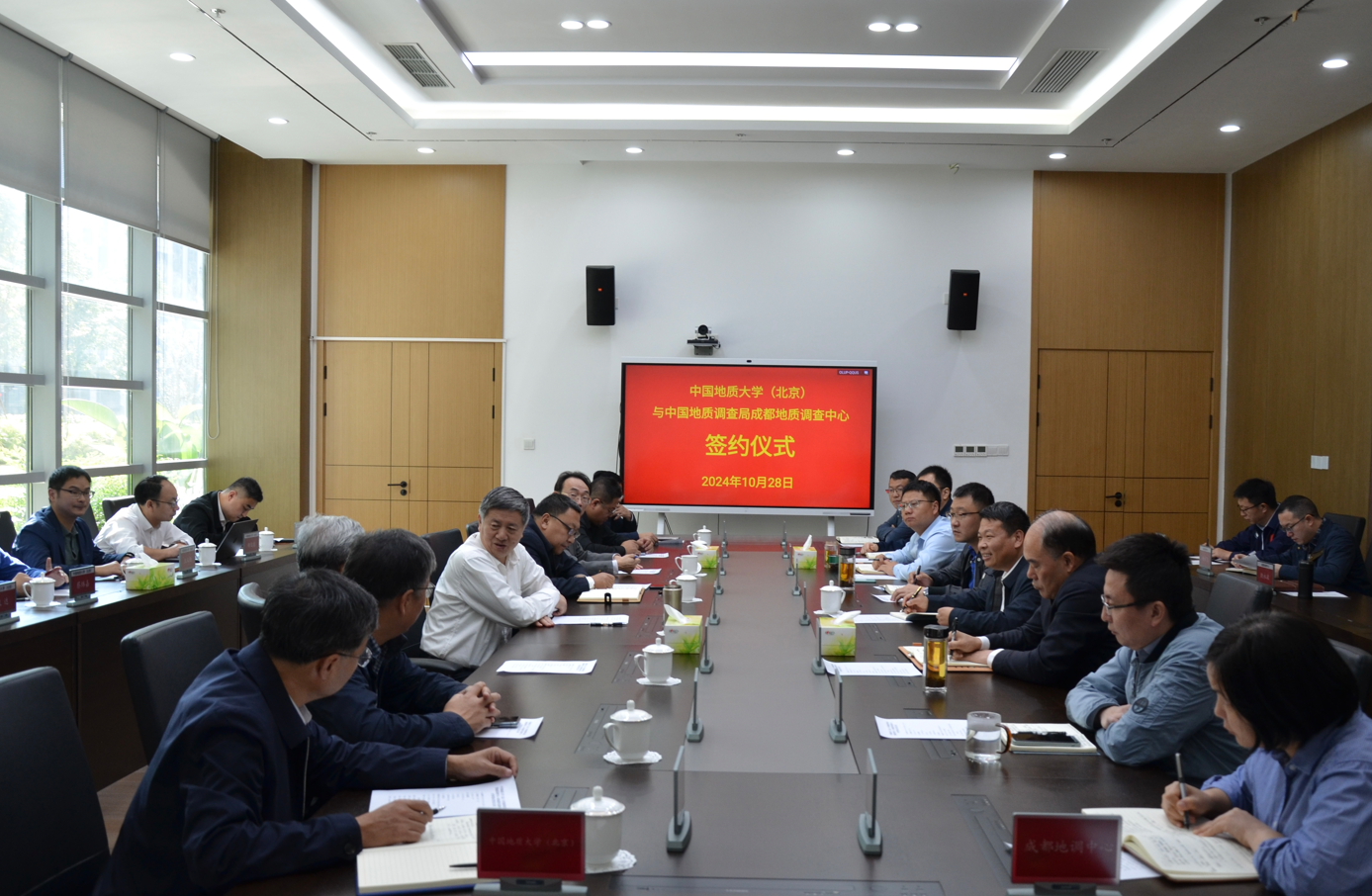 成都地调中心副主任、党委委员牟传龙和中国地质大学(北京)党委常委、副校长武雄代表双方签约,成都地调中心、中国地质大学(北京)相关部门负责同志参加座谈及合作框架签约仪式。