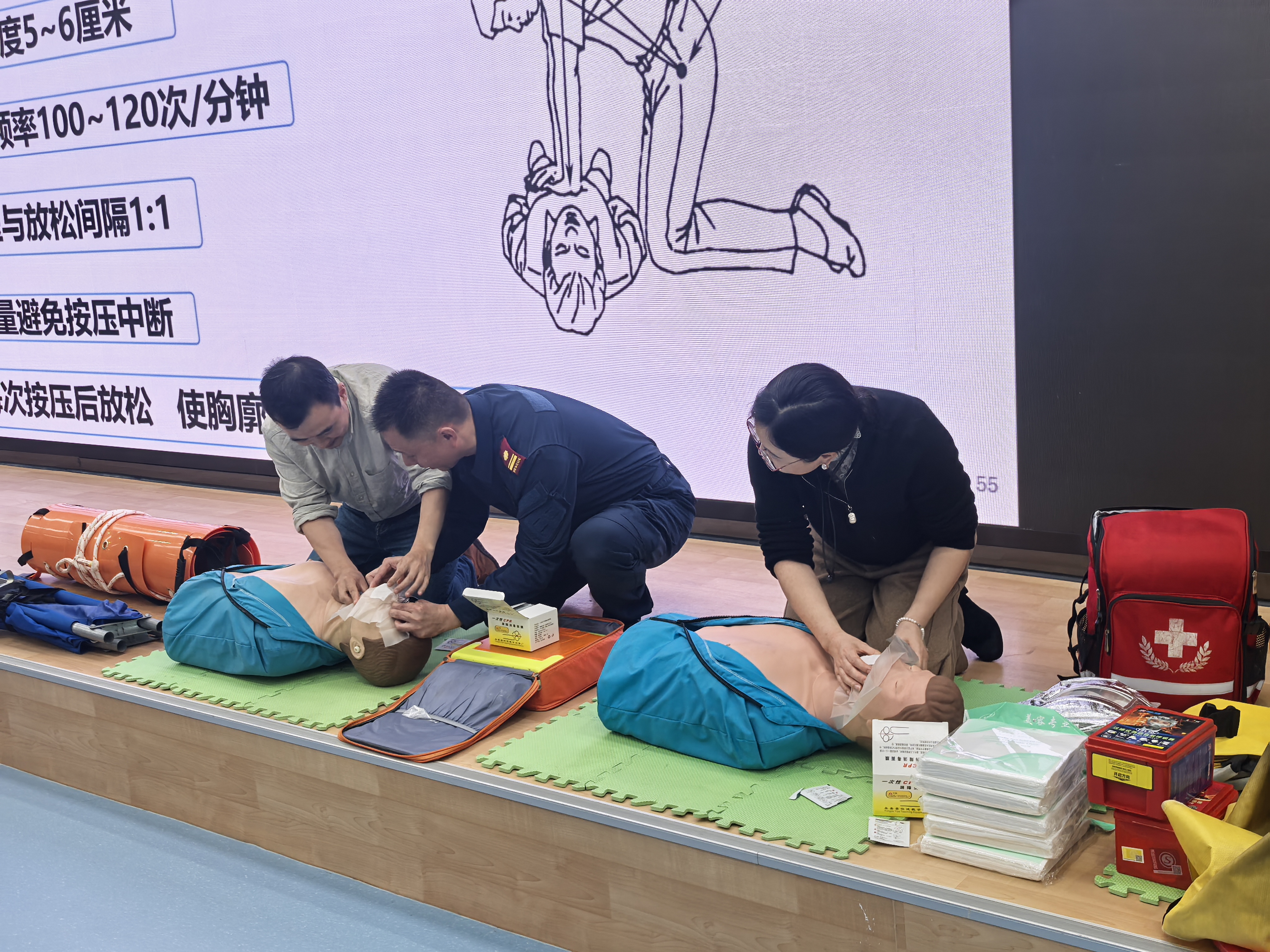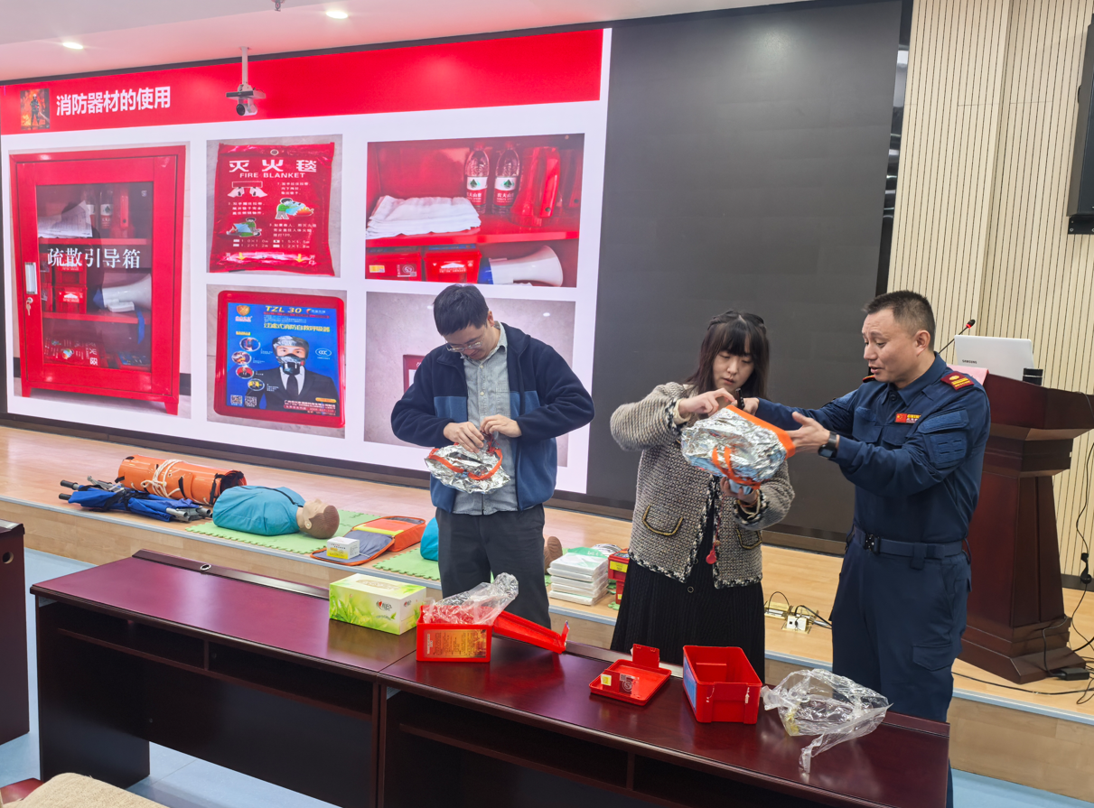 本次培训特邀专家以“全民消防、生命至上”为主题,普及了2024年全国消防宣传月的主题及指导思想;解读了新修订的《四川省消防条例》;通过中心基地防火门、防火面罩、灭火器、消防疏散示意图,详细讲解了人员密集的办公场所消防安全日常管理要求、火灾预防措施、火灾应对方式及逃生方法、现场救护等内容;剖析了近期几起典型的火灾案例。同时,现场演示了防火毯、防火面罩、灭火器的使用方法;通过互动式教学,提升中心职工心肺复苏、外伤包扎、人工呼吸等实用技能。