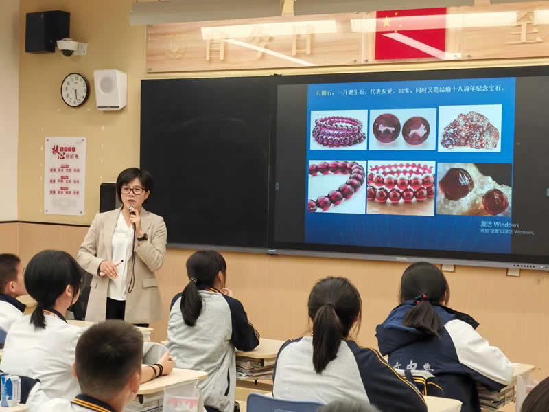 戴婕高级工程师给天府中学初一学子普及宝玉石的地质知识