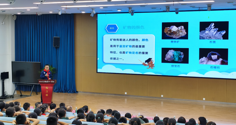 成都地调中心胡志中高级工程师向天府十一学校四年级师生介绍绚丽的矿物世界
