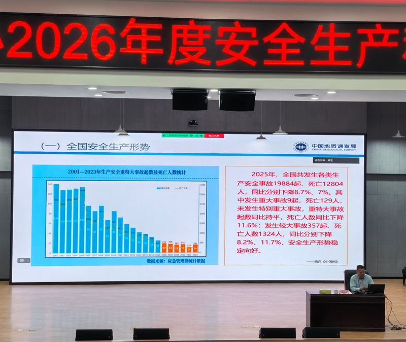 2026年3月23日,成都地调中心组织召开2026年度安全生产和保密工作会,中心领导班子成员、副总师、干部职工和学生、聘用人员等参加会议。