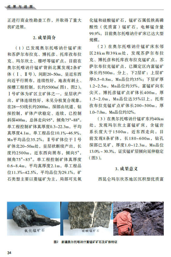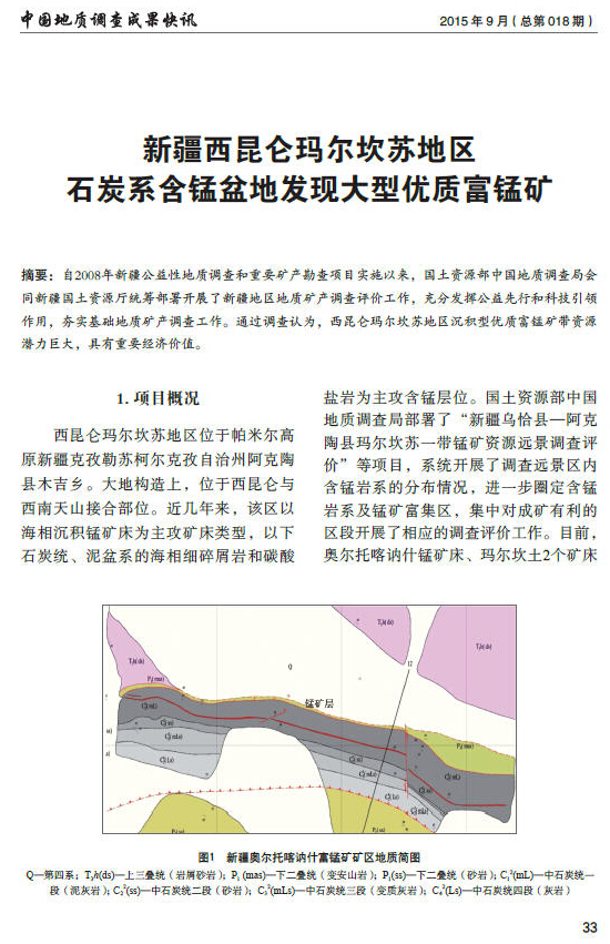新疆西昆仑玛尔坎苏地区石炭系含锰盆地发现大型优质富锰矿