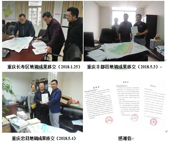 近期,中国地质调查局成都地质调查中心成渝经济区宜宾-万州沿江发展带1:5万环境地质调查项目组分别将重庆市长寿区、丰都县和忠县移交了县城及其规划区环境地质调查报告和图件,为地方城镇规划建设与发展提供地质科技支撑。