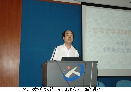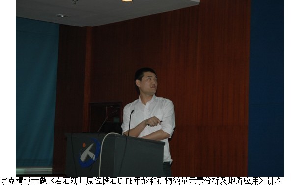 上午,刘勇胜教授做了《锆石U-Pb年代学测定技术》的讲座;下午,吴元保教授做了《锆石定年和同位素示踪》的讲座,宗克清博士做了《岩石薄片原位锆石U-Pb年龄和矿物微量元素分析及地质应用》的讲座。