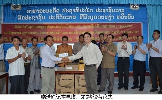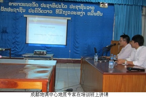 2012年4月9日,“老挝北部地区1:20万地质地球化学调查项目启动、培训班开班暨设备赠送仪式”在老挝首都万象举行,中老双方50余人参加会议,成都地调中心有关领导及项目人员、老挝自然资源环境部地质勘查司占酸司长、Khampha副司长出席仪式并讲话。