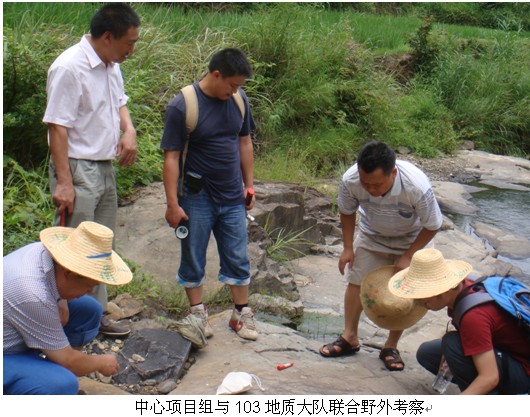 在贵州地质矿产开发局103地质大队总工覃英带领下,中心项目工作组与103地质大队工作人员对大塘坡期的西溪堡锰矿进行了野外实地考察。