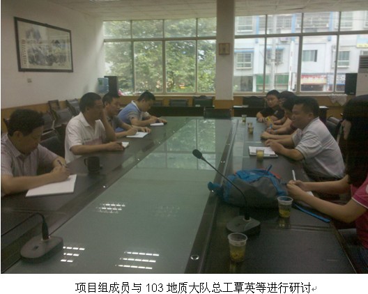 首先贵州地质矿产开发局103地质大队总工覃英对贵州铜仁地区大塘坡期锰矿的勘查、研究进展及成果做了详细介绍,并安排了具体的工作人员与中心项目工作组接洽,随后双方就锰矿整装勘查区的工作内容、工作手段、工作方法及下一步工作计划进行了研讨。