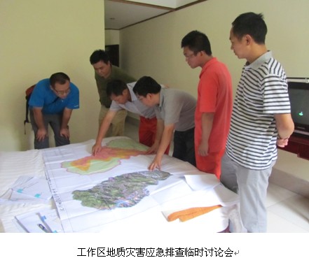 7月19日下午,排查组成员对绵竹市即将开展的排查工作进行了讨论和部署,分析工作区灾情,统一野外工作方法和技术要求,明确重点工作重点,并野外排查工作安全保障进行了准备。20日,成都中心地质灾害应急排查组将绕道安县向绵竹市灾情最为严重的孤岛—清平乡进发,开展应急排查。