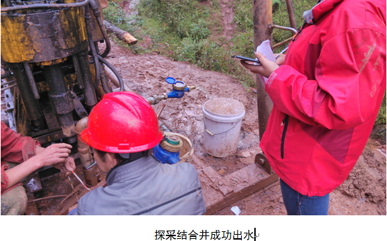 项目组了解该村水情后,结合当地实际需求,在全面分析该区地质和水文等资料的基础上,结合水文地质调查和物探解译成果,寻找蓄水构造靶区后准确定孔,精心施工,钻孔成功出水。该“探采结合孔”的成功出水不仅为当地地下水资源评价提供了基础参数,而且有效解决了该村居民饮水困难问题,受到当地政府和群众的广泛赞誉。