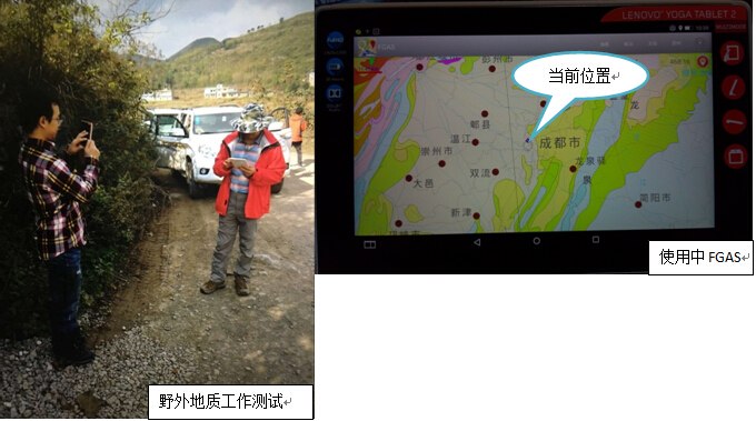 201511月,由中国地质调查局成都地质调查中心开发的“野外地质辅助系统”(Field Geological Assistant System,FGAS)在贵州黔西县进行了野外测试,达到了软件预期效果。
