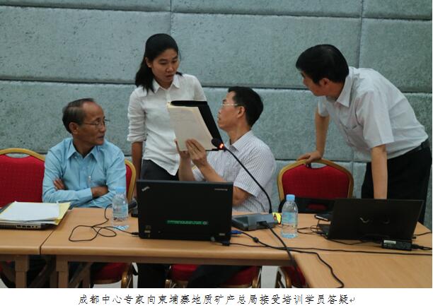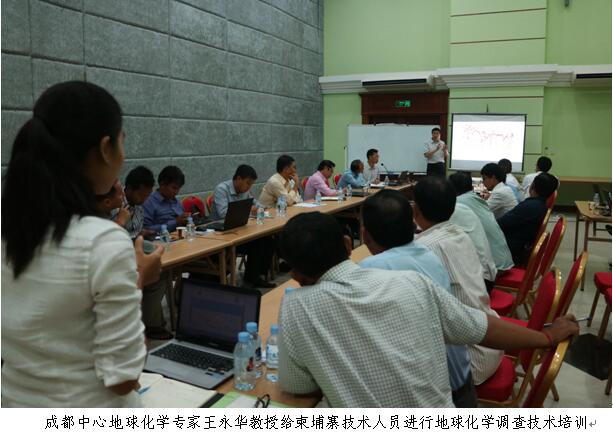启动仪式后,中国地质调查局成都地质调查中心地球化学专家王永华教授级高工给柬埔寨技术人员进行地球化学调查技术培训,培训分为室内教学与野外实习两个部分,为期7天。柬埔寨地质矿产总局30名技术人员全程参加了有关培训,同时,选派5名技术人员与成都地调中心开展接下来的项目野外工作。