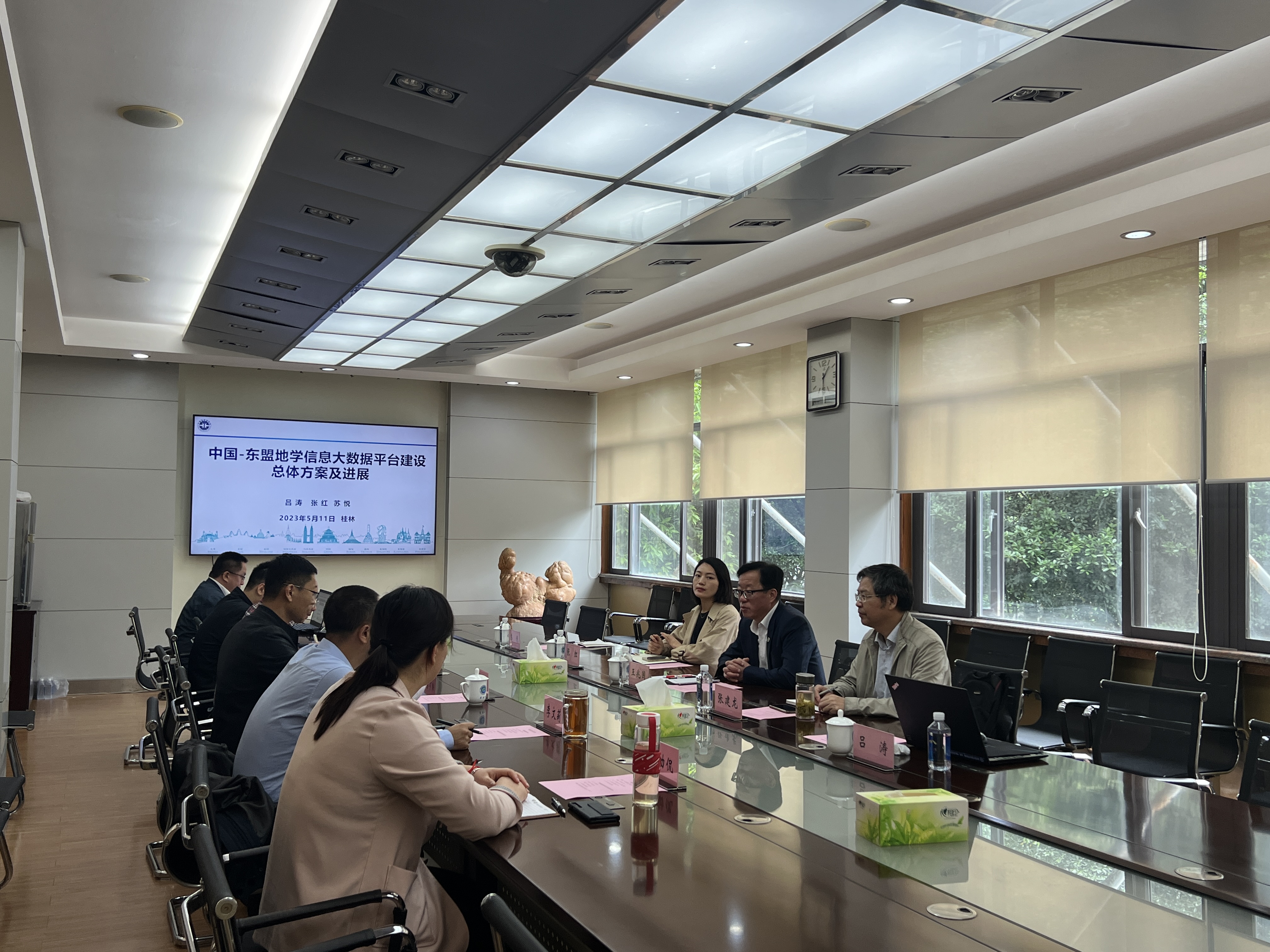 2023年5月11日,中国地质调查局成都地质调查中心纪委书记王兆国带队赴中国地质科学院岩溶地质研究所,就合作建实中国-东盟地学信息大数据平台(以下称“大数据平台”)核心数据库事宜进行了调研。