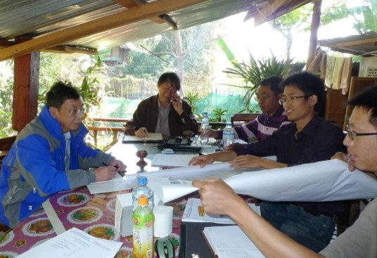 在老挝南部占巴塞省帕莱通工作区,项目负责人就野外工作情况、项目取得的进展和认识作了详细汇报,在认真听取项目组汇报后,丁俊主任一行到野外进行了检查并与项目成员现场讨论。在野外现场丁俊主任反复强调必须在保证安全的前提下,有条不紊的开展野外工作;他对项目组取得的阶段性成果表示了充分肯定,并对下一步工作方案的调整作出了重要指示和部署。他希望项目组扎实工作,再接再厉,为实现进一步找矿突破收集更全面、更详实的基础资料。
