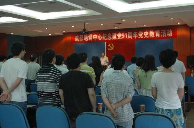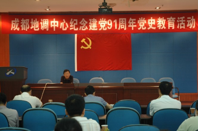 在中国共产党建党91周年到来之际,为继承发扬延安精神,进一步坚定党员的理想信念,成都地调中心于6月29日开展了庆祝建党91周年党史教育活动,中心领导及全体党员共计60余人参加了活动。活动分为三个部分:一是由中心党委委员、副主任王洁民作“党中央在延安十三年”为主题的党史讲座;二是由中心党委书记、主任丁俊结合纪念建党91周年作重要讲话;三是由中心党委副书记、纪委书记王全海宣读《中共中国地质调查局党组关于表彰创先争优活动先进基层党组织、优秀共产党员和优秀党务工作者的决定》。