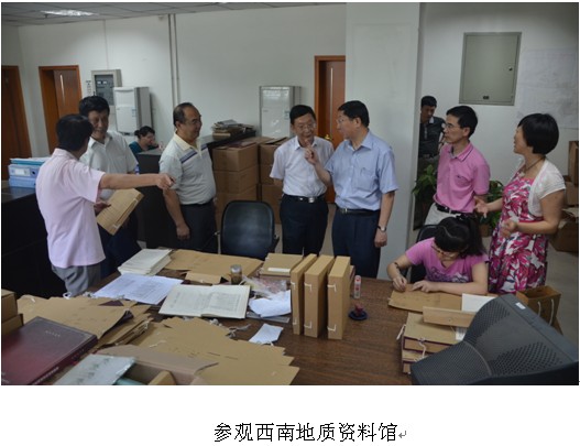 李海清一行参观了中心实验与测试中心、西南地质资料馆、办公区及职工生活区,亲切慰问了中心职工;并听取了中心业务工作开展情况、党建工作情况及党风廉政建设工作汇报,高度评价了中心工作成绩。对中心反腐倡廉工作提出了四项具体要求:一是要提高认识,抓好中央对反腐倡廉工作文件的学习、领会和执行;二是要牢牢把握反腐倡廉工作的定位;三是要找准工作切入点,以点带面开展工作;四是要狠抓六项检查,坚持不能腐败的高压态势。