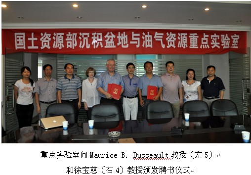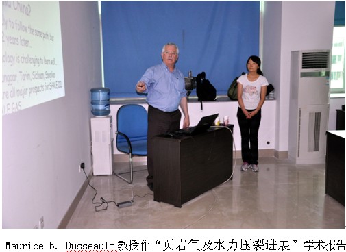 应中国地质调查局成都地质调查中心和国土资源部沉积盆地与油气资源重点实验的邀请,加拿大滑铁卢大学(University of Waterloo)油气地质学家Maurice B. Dusseault教授、徐宝慈教授于2013年7月1-2日来成都开展页岩气合作研究及学术交流活动。国土资源部沉积盆地与油气资源重点实验室聘请Maurice B. Dusseault教授和徐宝慈教授为重点实验室学术委员会委员和客座教授,重点实验室主任王剑向两位教授颁发了聘书。7月1日下午,Maurice B. Dusseault教授作“Shale Gas and Hydraulic Fracture Development(页岩气及水力压裂进展)”的学术报告,来自成都地质调查中心、成都理工大学、西南石油大学、成都探矿工艺研究所、四川煤田地质局、四川省能源投资集团等约60名地质科研人员参会听取报告,并就页岩气的有关问题进行了研讨。通过学术报告会,参会人员了解了页岩气油气地质调查及水力压裂技术等方面的最新进展,增强了对中国页岩气勘查开发前景的信心,同时也加深了对页岩气开发过程中需要解决的技术困难的认识。