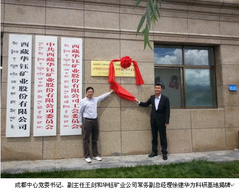 9月9日,“中国地质调查局成都地质调查中心-西藏华钰矿业股份有限公司科研生产实习基地”在拉萨举行揭牌仪式,成都中心党委书记、副主任王剑与西藏华钰矿业股份有限公司常务副总经理徐建华共同为基地揭牌。