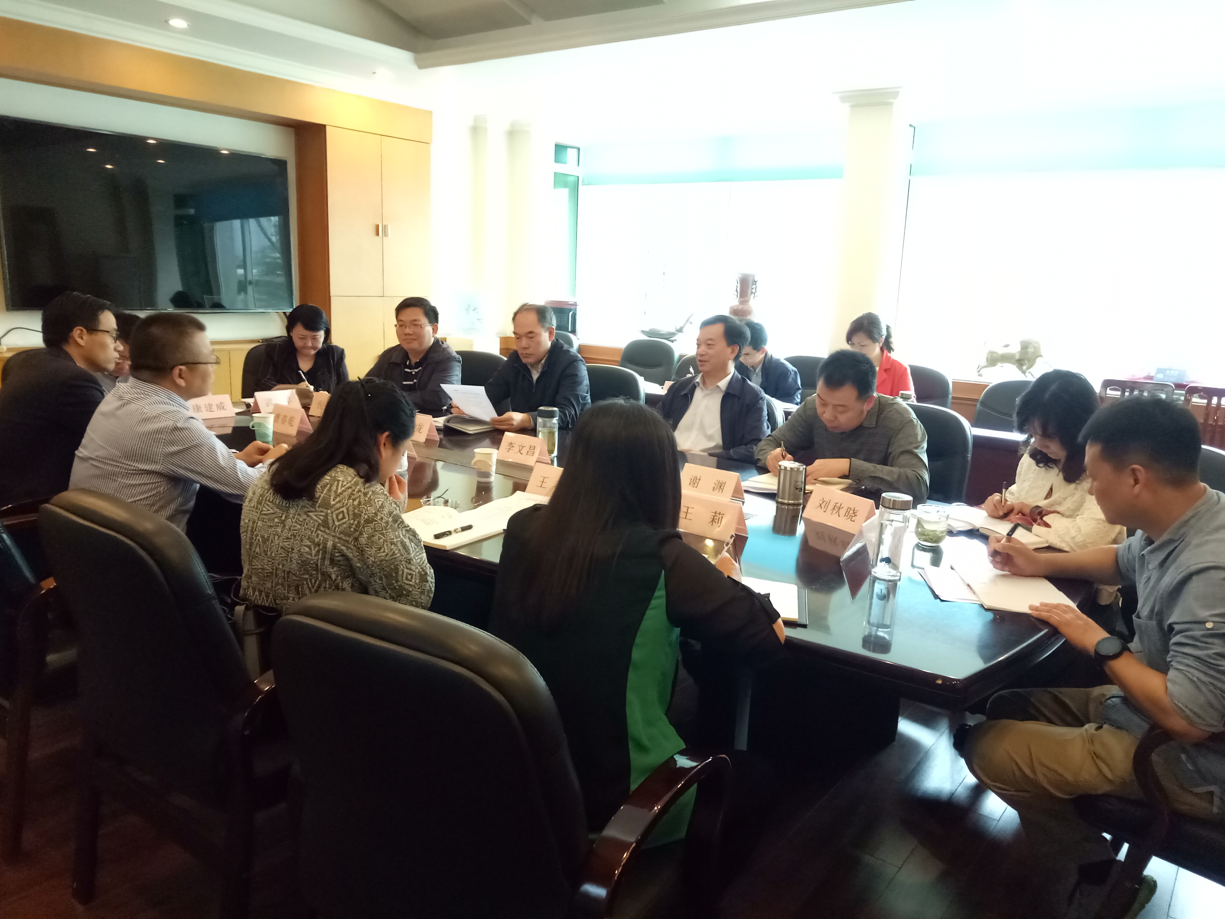 2018年4月26日,局廉政风险防控专项审计调研组张敏副主任一行4人,莅临中国地质调查局成都地质调查中心开展“廉政风险防控专项审计检查”专题调研。中心主任李文昌、副主任谢渊、相关管理部门、部分业务部门、二级项目、子项目负责人和监察审计处全体人员参加座谈。