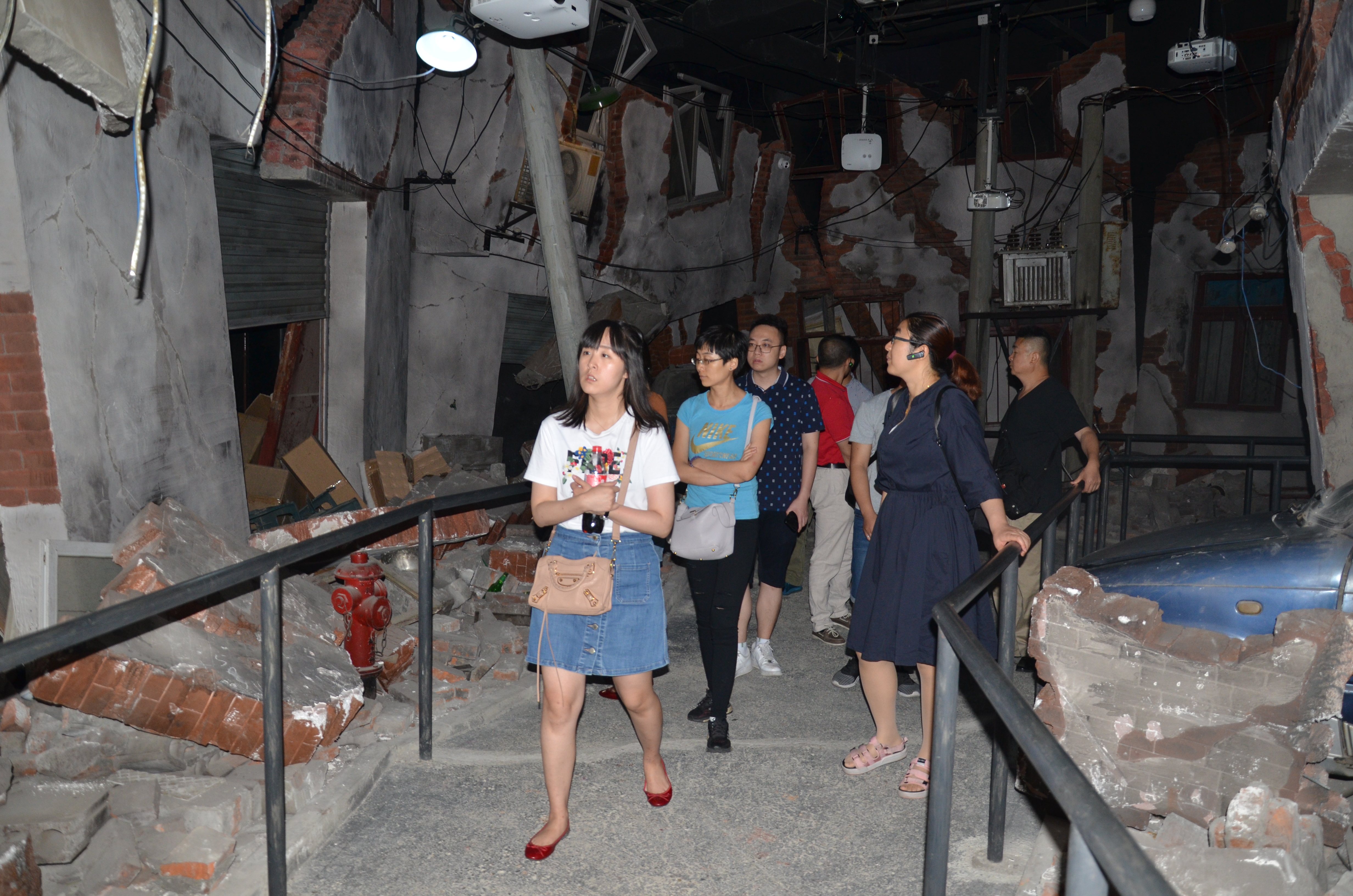 教育馆专业人员带领下大家先后参观了模拟灾害区、认识灾害区、防救灾害区等4个主题展馆,从视觉、听觉、触觉等多角度体验了3级至8级地震、迅猛的泥石流、肆虐的海啸......重现了自然灾害的无情与危害。