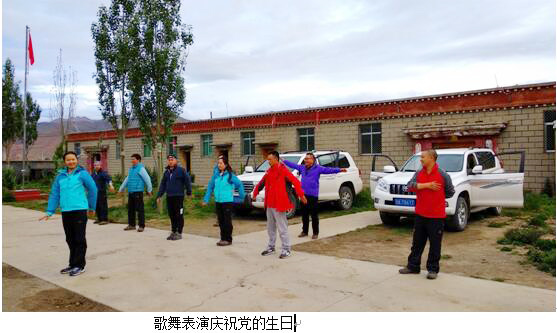 7月1日,党的生日当天,安全检查组人员和冈底斯-喜马拉雅铜矿资源基地调查野外临时党支部共同献上一曲歌舞表演为党庆生。检查组人员还和扎西康地区6个项目组成员,四川地调院、四川核工业地质调查院等单位外聘技术人员共计30余人共同举行了庄重的升旗仪式,并在冈底斯野外临时党支部书记董随亮的带领下重温了入党誓词。