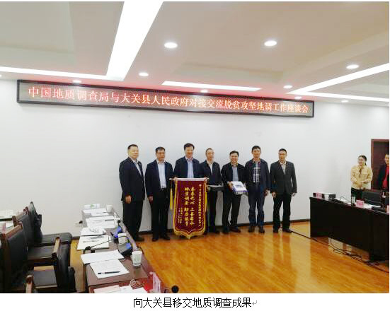 大关县委书记陈刚对移交的地质调查成果给予了高度评价,对中国地质调查局在大关开展的地质扶贫工作高度认可,认为地调局的地质扶贫是真真切切走进百姓心里,为地方带来实惠的扶贫。他表示大关县将深挖地质调查成果潜力,加强成果的应用,完善包装好已有的水文、矿产和地质遗迹调查成果,积极推介,使资源转化为实实在在的效益。要求各乡镇的党委书记亲自负责,抓好在大关的地质调查项目的服务工作。