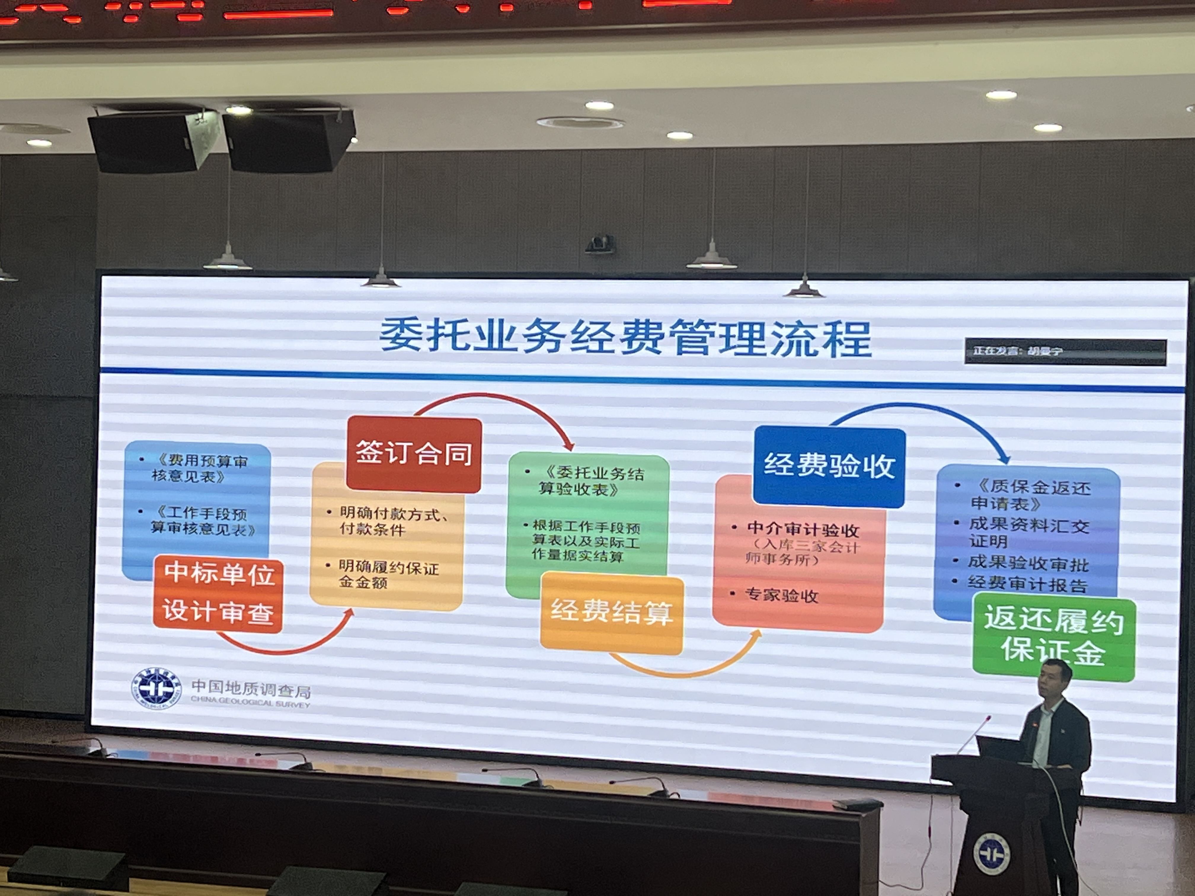 本次培训会由规划处组织,采用现场+视频的方式进行。规划处、财务处分别对全国地质调查业务管理和部署、局地质调查项目管理办法和地质调查绩效管理要求做了详细的讲解。中心管理部门负责人、业务人员参加会议,现场人员106人、线上42人参加了培训。
