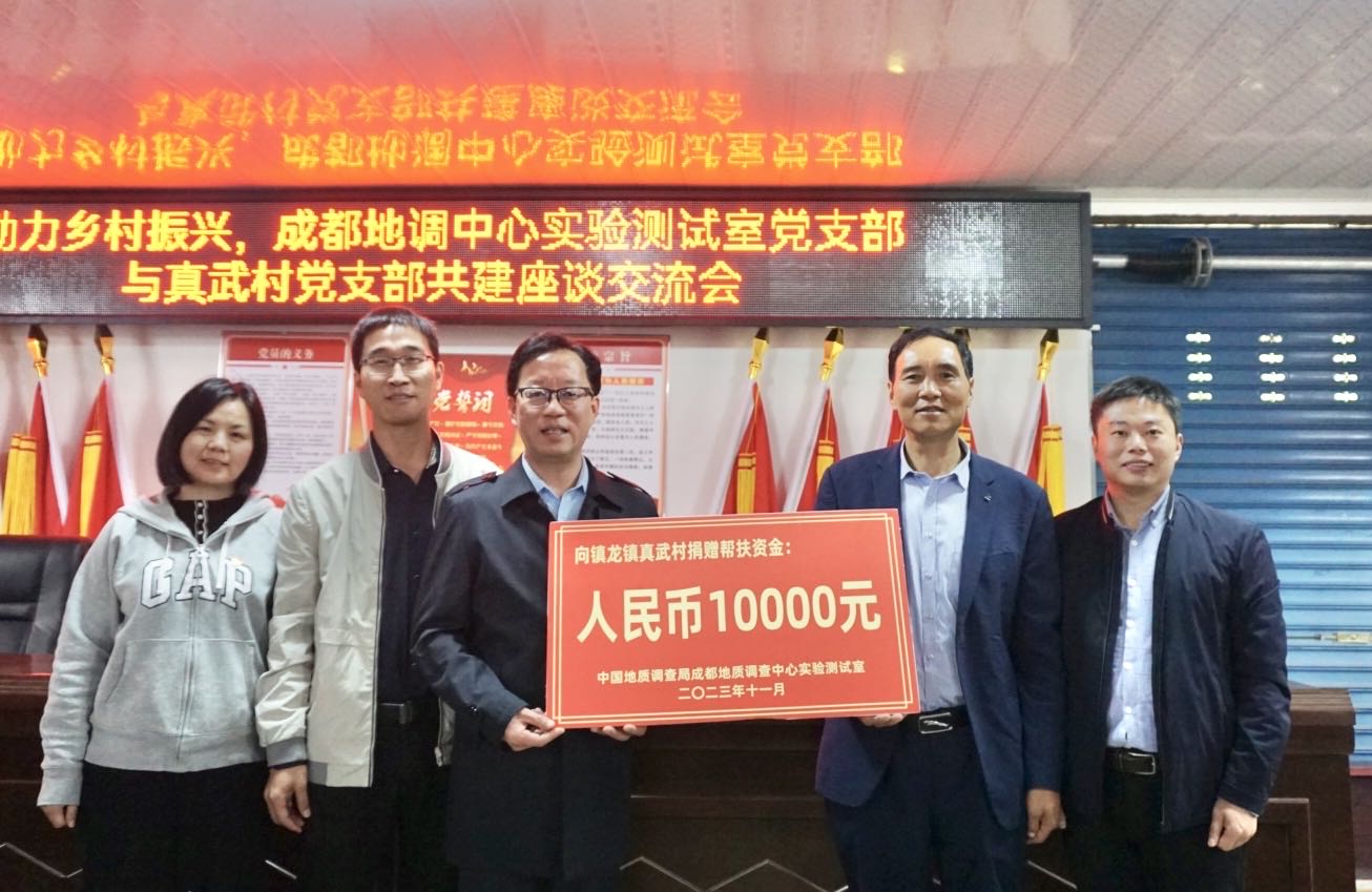 在与真武村党支部座谈交流会上,成都地调中心派出驻村干部董俊就担任真武村第一书记以来的工作成效及存在的问题做了简要报告,真武村党支部书记王守军对董俊同志驻村一年半以来的工作表示高度肯定和赞扬,同时代表村委感谢成都地调中心对真武村乡村振兴工作的援助和扶持。双方围绕乡村振兴工作难点、驻村干部后期工作方向等方面开展了深入交流,一致认为要紧紧抓住驻村干部这个纽带,充分发挥成都地调中心的专业优势并做到以下几点:一是因人成事,助力乡村振兴,做到同心致远;二是因地制宜,多方协作努力,做到一题共答;三是因时而异,响应需求牵引,做到同声合意;四是因难见巧,深植合作沃土,做到同频共振。座谈会后,实验室党支部向真武村捐赠爱心帮扶资金一万元并为五保户群众送上亲切慰问。