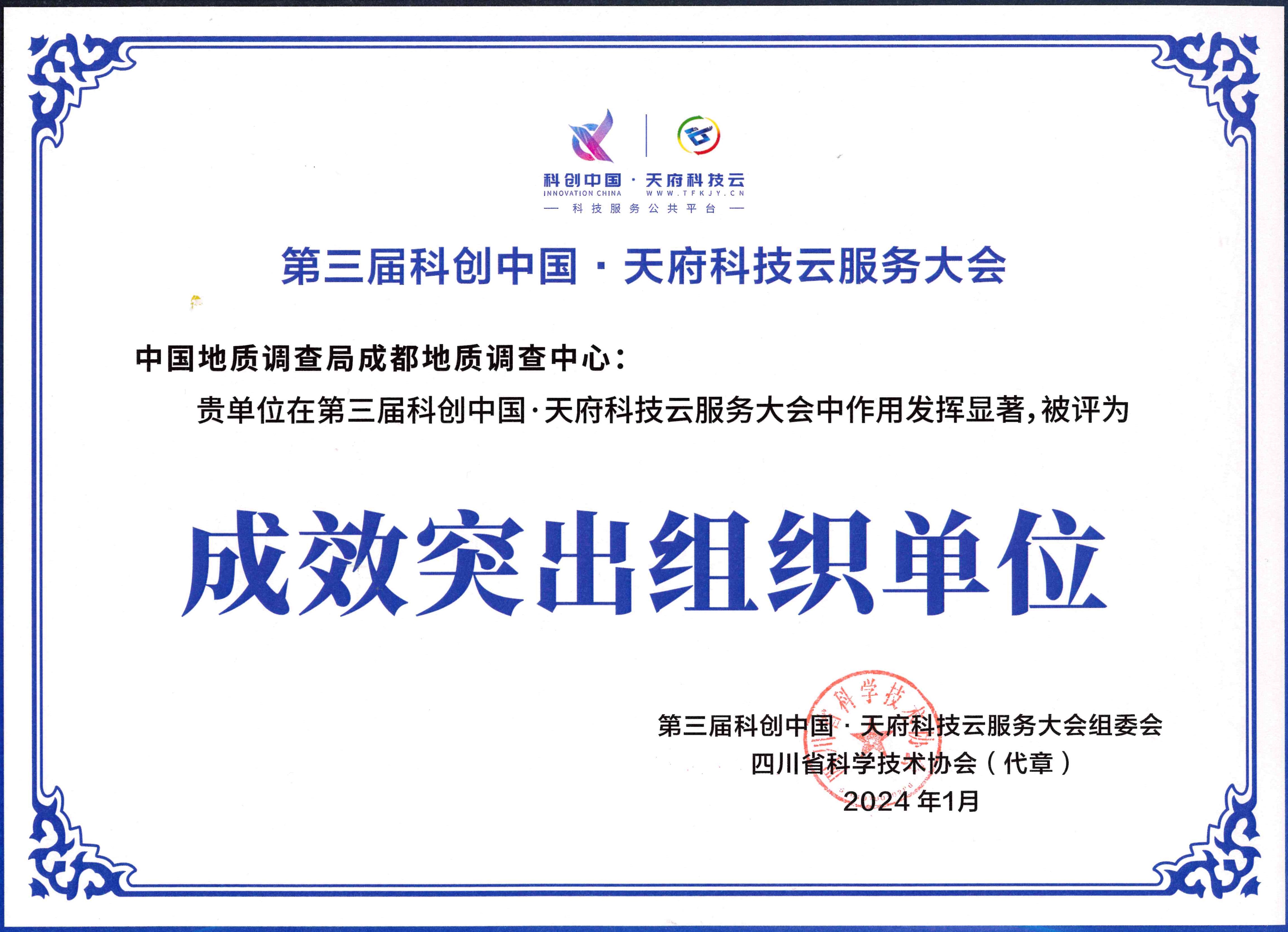 成都地调中心荣获“成效突出组织单位”
