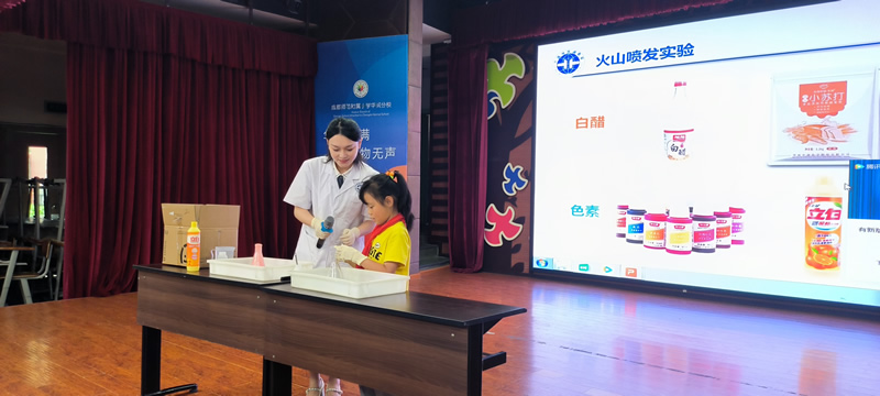 陈瑜工程师带小朋友们开展了火山爆发模拟趣味实验