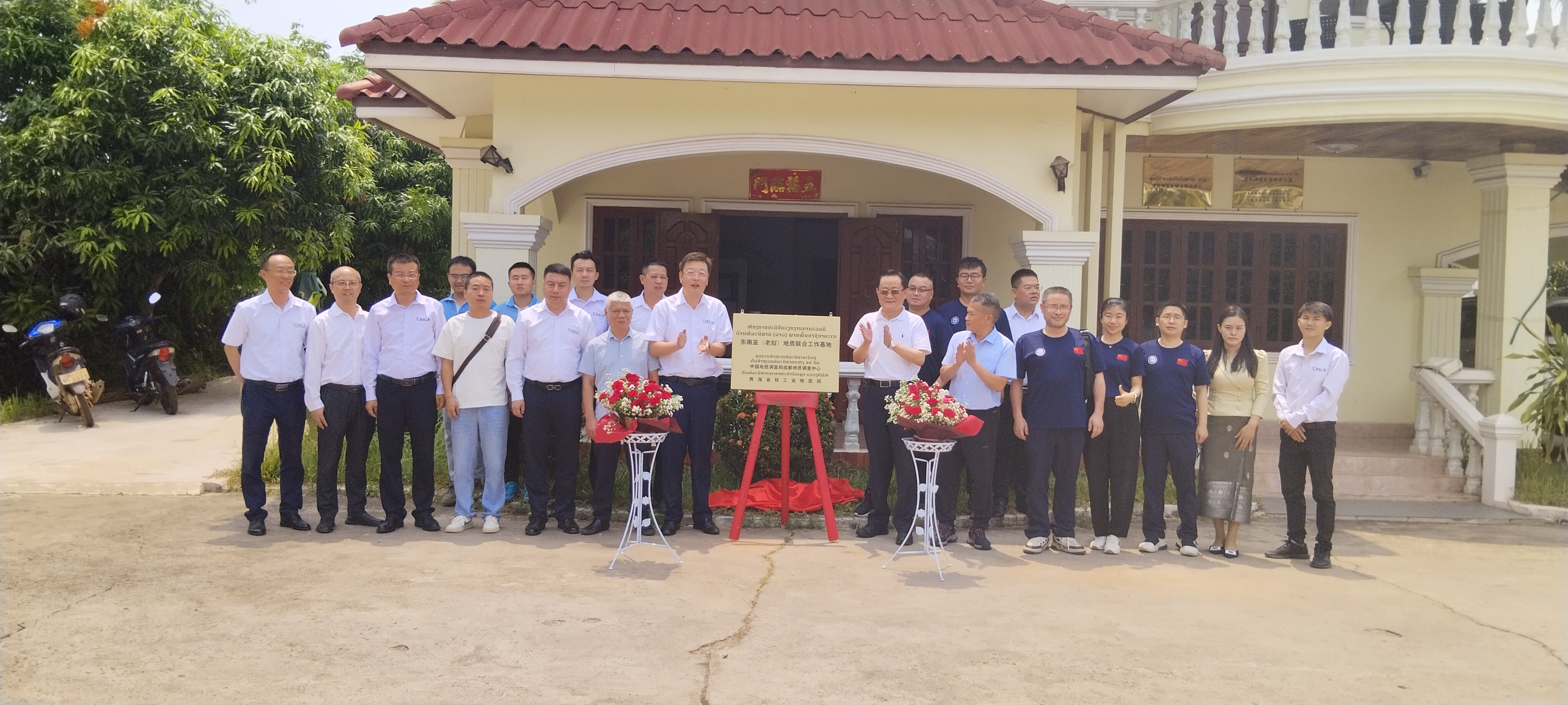 5月6日,成都地调中心党委成员、副主任孙清元一行到访青海核工业地质局老挝青海工程技术有限公司,双方举行“东南亚(老挝)地质联合工作基地”成立揭牌与合作项目签约仪式,深入交流后续的技术合作。