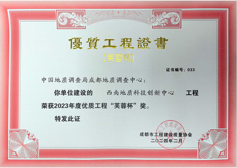 西南地质科技创新中心基地建设工程自开工以来,中心一直以打造“精品、廉洁、平安、献礼”四个工程为目标,坚持“百年大计、质量为先”的理念,严把工程建设各项质量关。此次荣获2023年度优质工程“芙蓉杯”奖,再次证明西南地质科技创新中心基地建设工程质量过硬、精品优质!