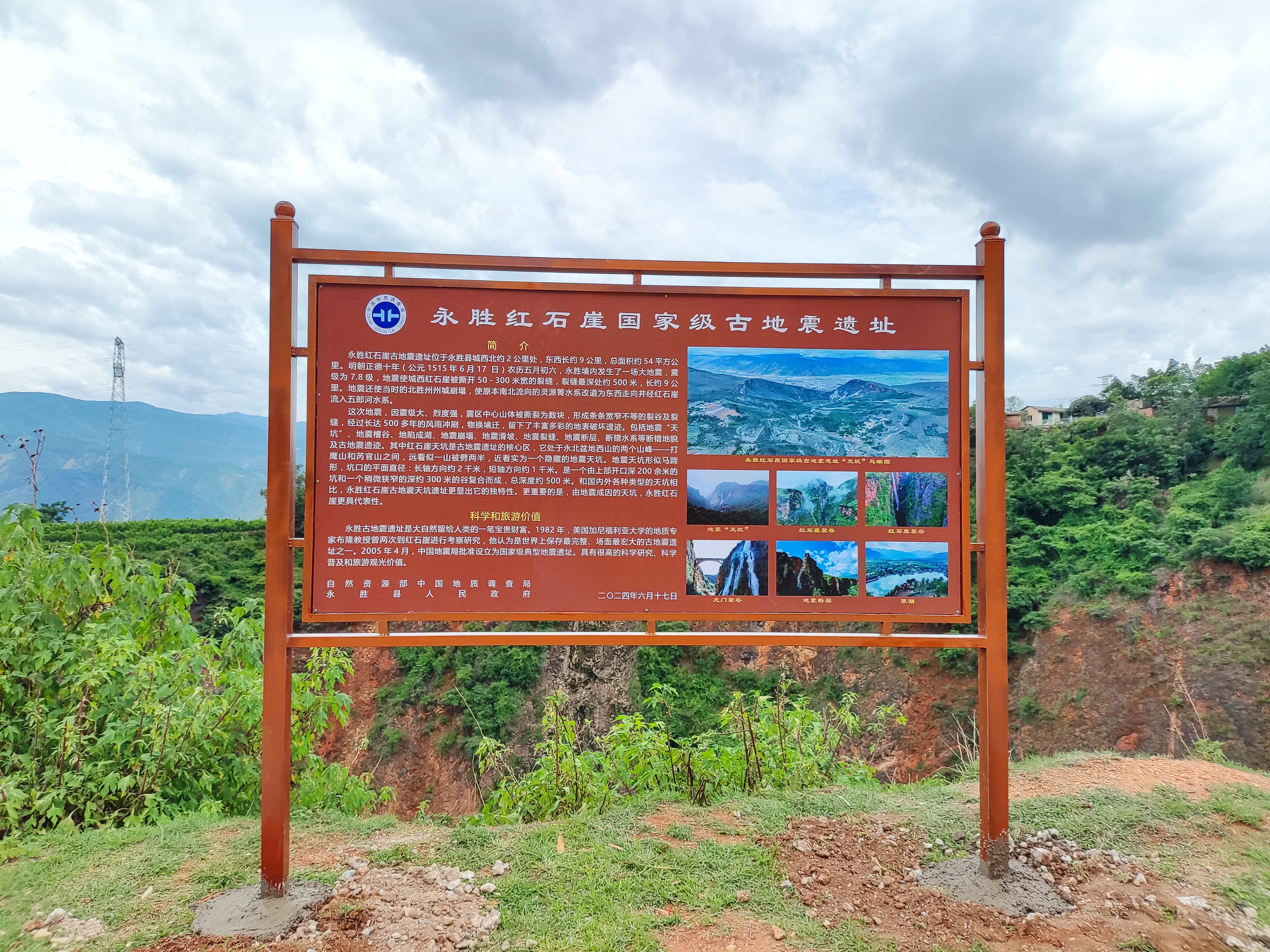 永胜县红石崖古地震遗址位于永胜县城西北约2公里处,是三川田园风光旅游的重要景点之一。明朝正德十年(公元1515年6月17日)农历五月初六,永胜境内发生了一场7.8级的大地震。此次地震在红石崖地区形成了地震“天坑”、地震槽谷、地陷湖泊、地震崩塌、地震滑坡、地震裂缝、地震断层、断错水系等古地震遗迹,虽历经500多年的风雨冲刷,仍然保存完好,已被中国地震局批准设立为国家级典型地震遗址,具有极高的科学研究、科学普及和旅游观光价值。实地调查发现,该地震遗址缺少户外宣传设施,本地居民和外来游客对该地震遗址知之甚少,制约了该遗址的旅游开发和景点建设。