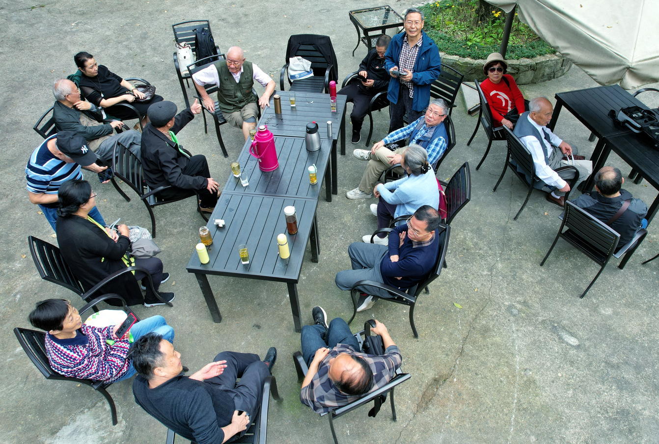 老同志们漫步在“鲜花盛开的村庄,没有围墙的公园”,欣赏着宜人的生态环境,感受着金秋的惬意与美好,边走边交流,不时拿出手机和相机,合影留念;有的老同志甚至飞起了无人机,从别样角度定格下美好的瞬间。