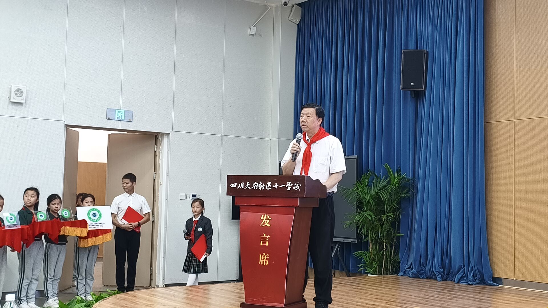 活动启动仪式上,成都地调中心副主任廖忠礼研究员为学校授予“刘宝珺中队”队旗,并赠送《刘宝珺传》,以此致敬老一辈科学家的求真精神,将科学火种深植青少年心中。天府十一学校副校长裴刚老师代表学校接过了队旗和赠书,并表示这是播撒在同学们心中的科学种子,必将在同学们身上生根发芽。