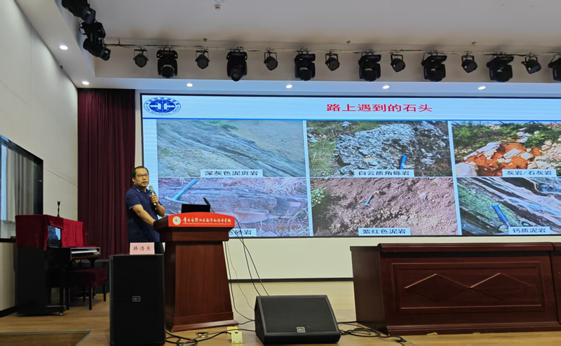 成都地调中心韩浩东高级工程师向重庆黔江新华中学师生普及了地质灾害及其防治和预警的知识