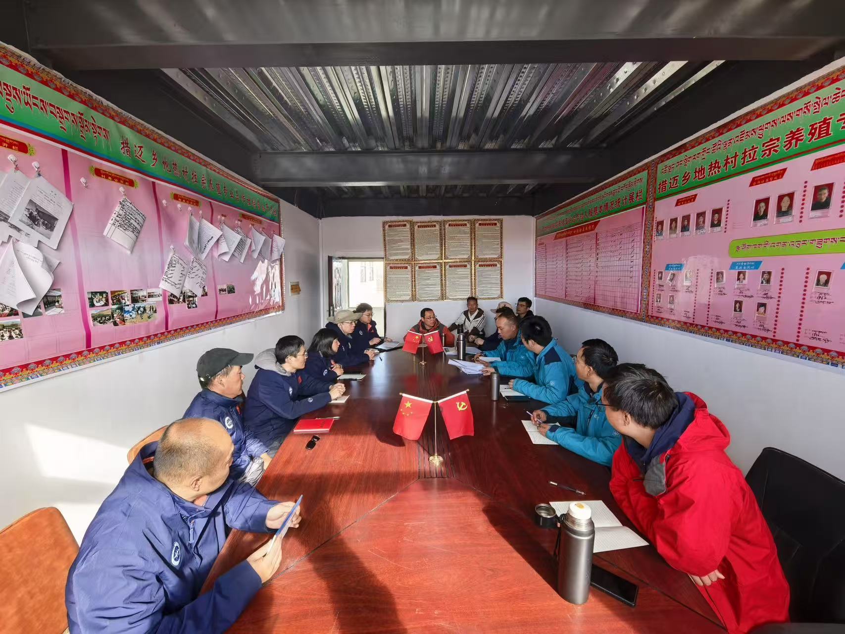 为扎实推进深入贯彻中央八项规定精神学习教育,充分发挥党员在野外一线的先锋模范作用和基层党组织的战斗堡垒作用,确保高质量完成地质调查任务,基础地质室冈底斯-藏南成矿带区域地质调查野外临时党支部于6月24日在藏北昂仁县措迈乡驻地,组织开展了“缺氧不缺精神,艰苦奋斗,打造忠诚干净担当的高原地质铁军”主题党日活动。