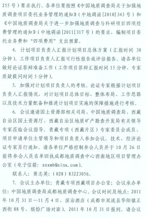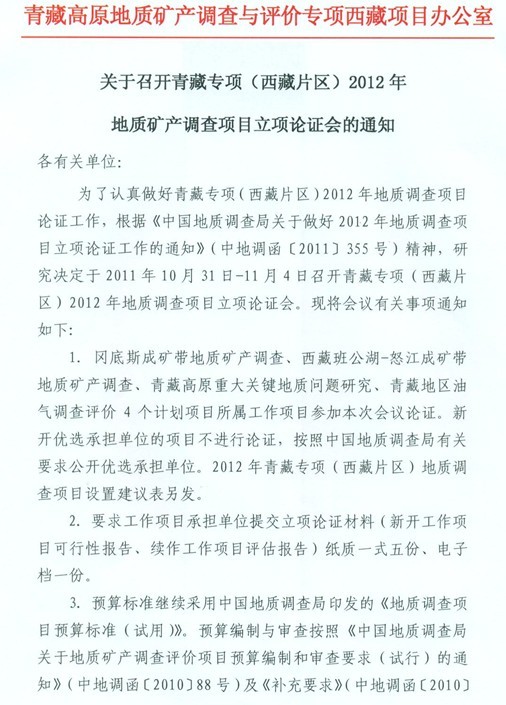 关于召开青藏专项(西藏片区)2012年地质矿产调查项目立项论证会的通知