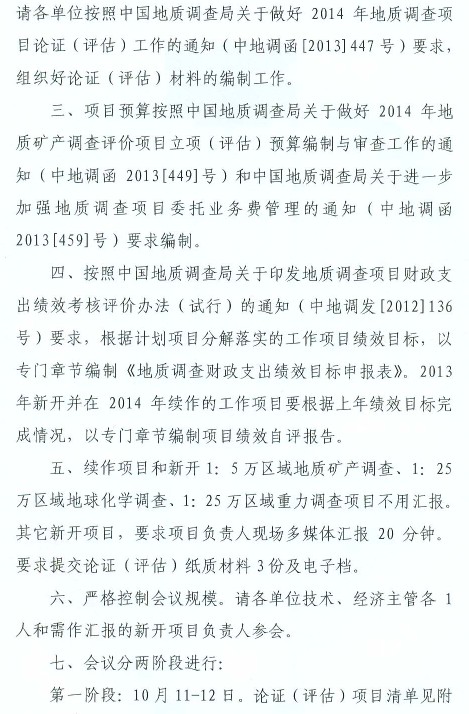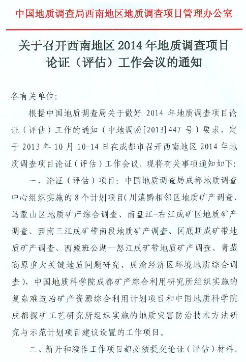 关于召开西南地区2014年地质调查项目论证(评估)工作会议的通知