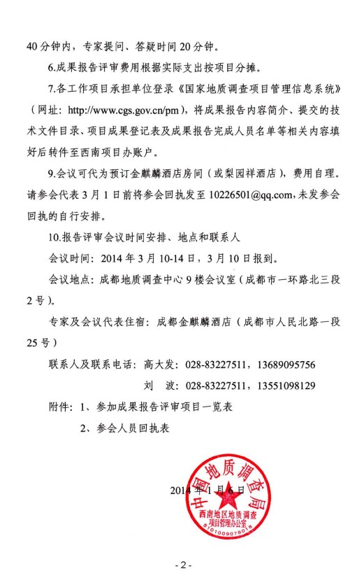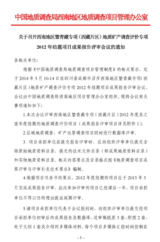 关于召开西南地区暨青藏专项(西藏片区)地质矿产调查评价专项2012年结题项目成果报告评审会议的通知