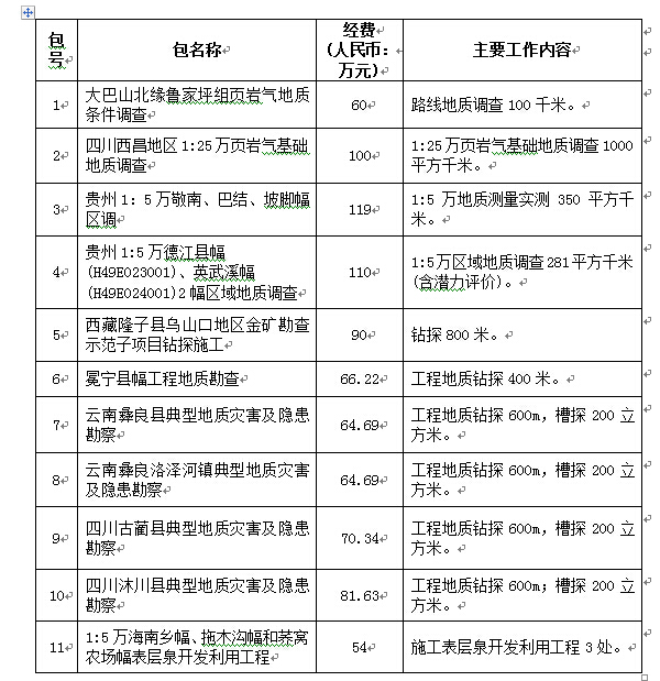 项目名称:2016年中国地质调查局成都地质调查中心四川盆地下古生界海相页岩气基础地质、南盘江成矿区贞丰和富宁地区地质矿产、武陵山成矿带酉阳-天柱地区地质矿产、冈底斯-喜马拉雅铜矿资源基地、四川西昌等城镇和金沙江下游水电开发区工程地质、乌蒙山区北部城镇地质灾害、乌蒙山连片贫困缺水区1:5万水文地质调查项目委托业务