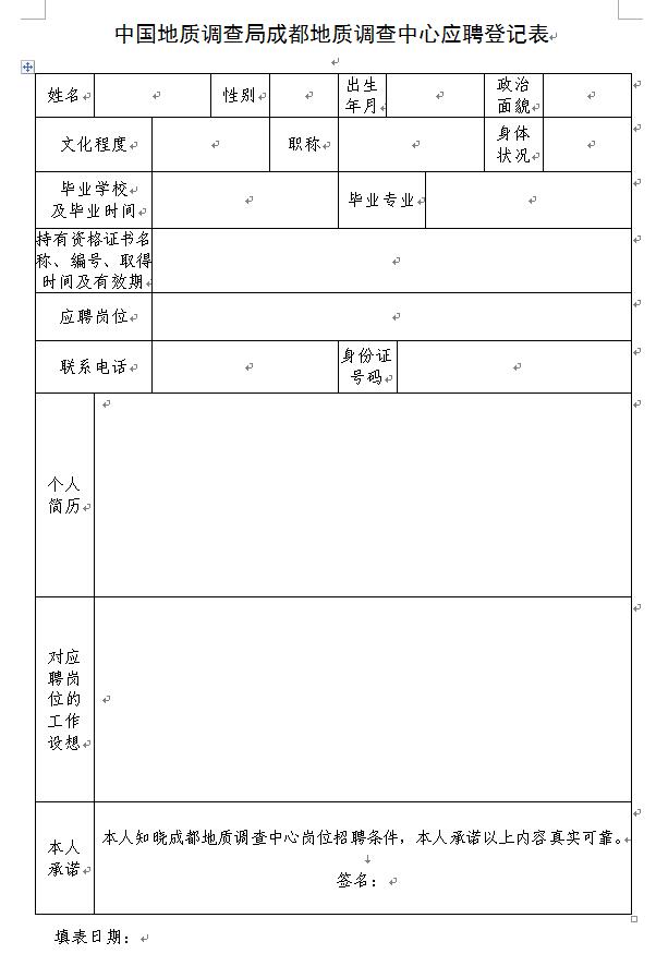 1.中国地质调查局成都地质调查中心应聘登记表;